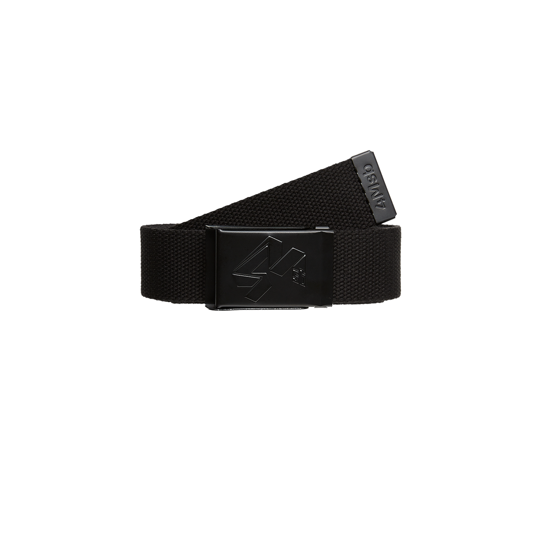 Black webbing belt in polyester with a metal alloy buckle. The buckle is also a bottle opener. Moulded 4Msb logo on the buckle and 4Msb texted on the belt tip. Available in the two colors: black and olive.