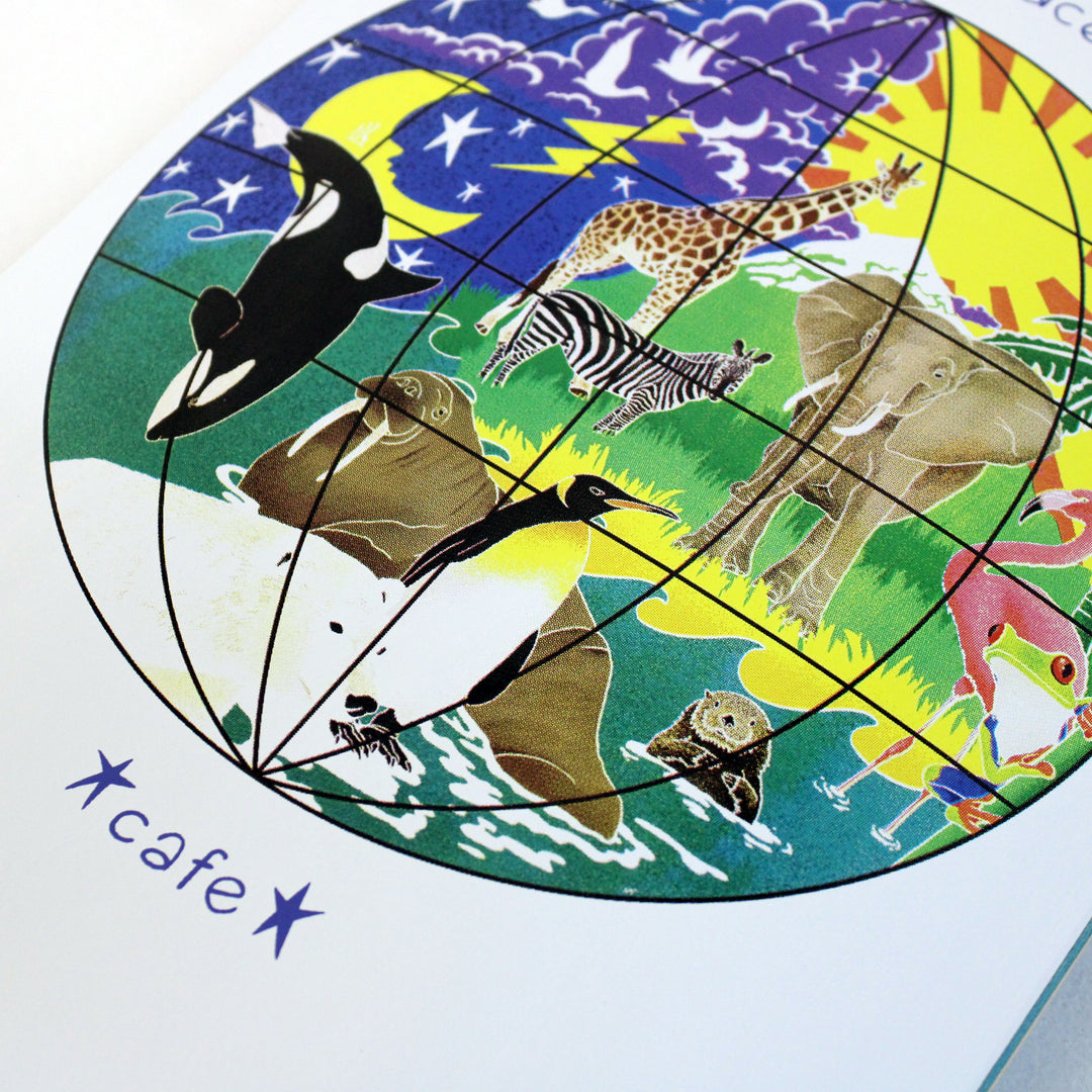 Ride in style with the Cafe Skateboard Deck Great Place in crisp white.