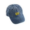 skateovation dad cap in the colour vintage denim with the SO logo embroidered in yellow.